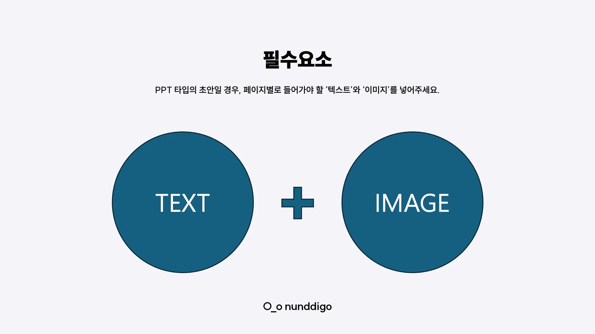 PPT 타입의 초안일 경우, 페이지별로 들어가야 할 ‘텍스트’와 ‘이미지’를 넣어주세요.